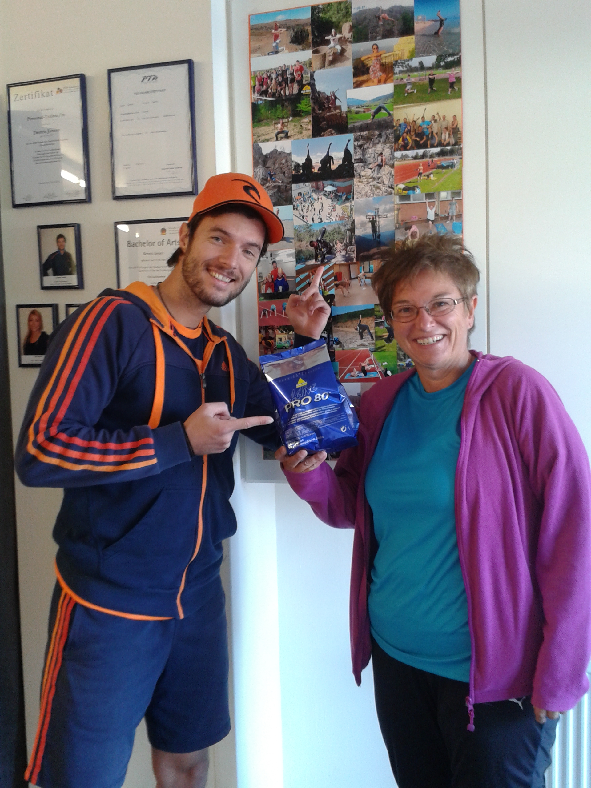 Damit stand die Gewinnerin fest – Ulla. Sie erhielt heute beim Training eine Packung Eiweiß Himbeer-Jughurt und war sehr erfreut über das Geschenk beim ersten Training nach Ihrem Urlaub.