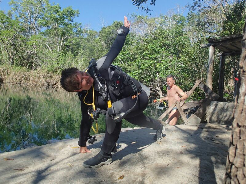 Siegerfoto. Die Movement Preperation Übung Ausfallschritt mit Rotation im Taucheranzug – Klasse.