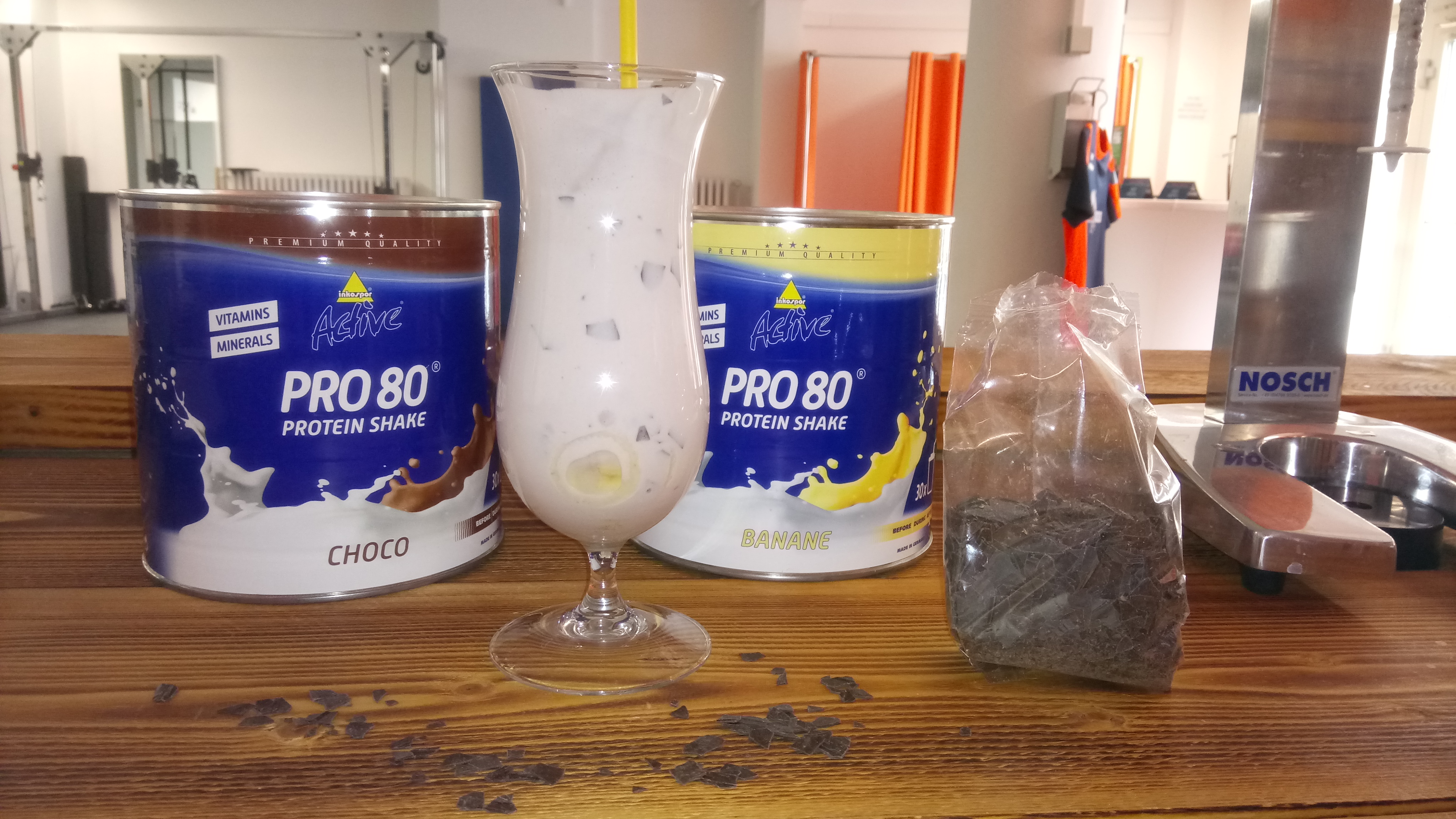 Den Herbst Spezial Bananensplit. Er liefert euch das wichtige Eiweiß nach dem Training, sowie Vitamine und Mineralstoffe aus frischen Bananen. Zartbitterschokolade ist das i-Tüpfelchen auf dem Shake und macht ihn somit zu einem Genuss.